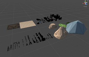 - 21 Environment Parts: Low poly mountains, rocks, hills, and terrain patches.